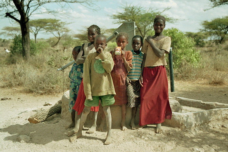A borehole and pump in Isiolo – although the water is not piped into an individual's home a borehole and pump in the village gives a convenient and reliable supply.
