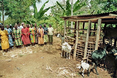 Kamwimbi women's self-help group, with some of the goats purchased through a Trust grant. The goats are an improved breed with a much higher production of milk than with traditional goat breeds.